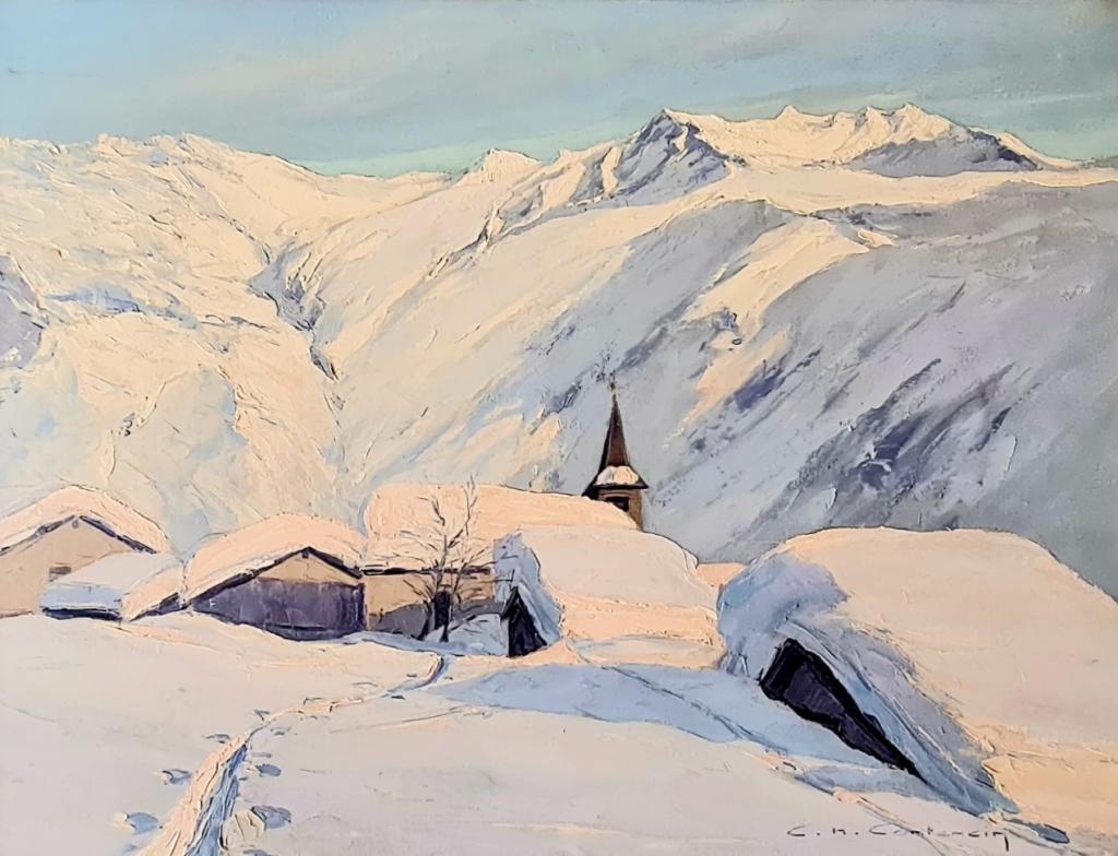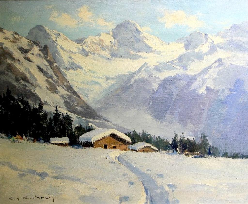 Charles-Henri Contencin aimait beaucoup peindre des effets de coucher ou lever de soleil sur la neige ou des glaciers.